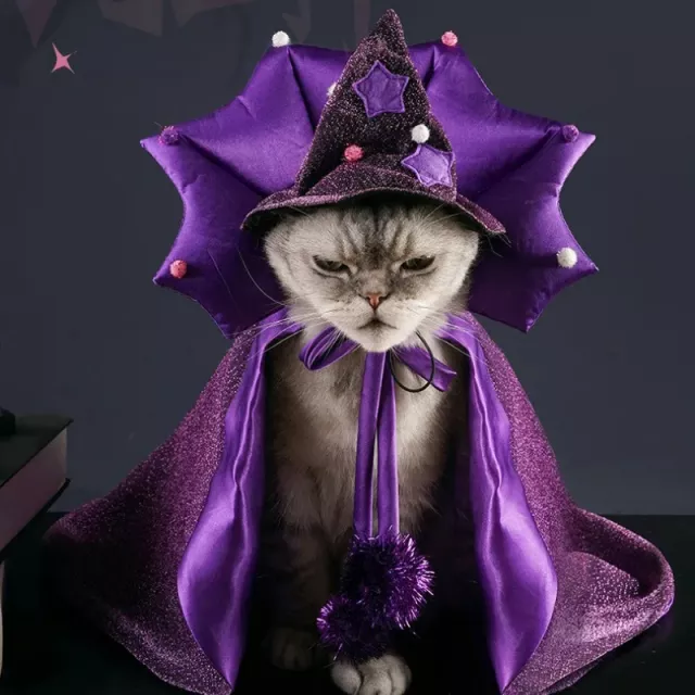 Funny Purple Witch Costume for Cats & Small Dogs – Cloak & Hat Set